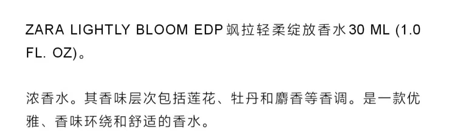 ZARA女士香水LIGHTLYBLOOM輕柔綻放+DEEPGARDEN秘密花園淡香水